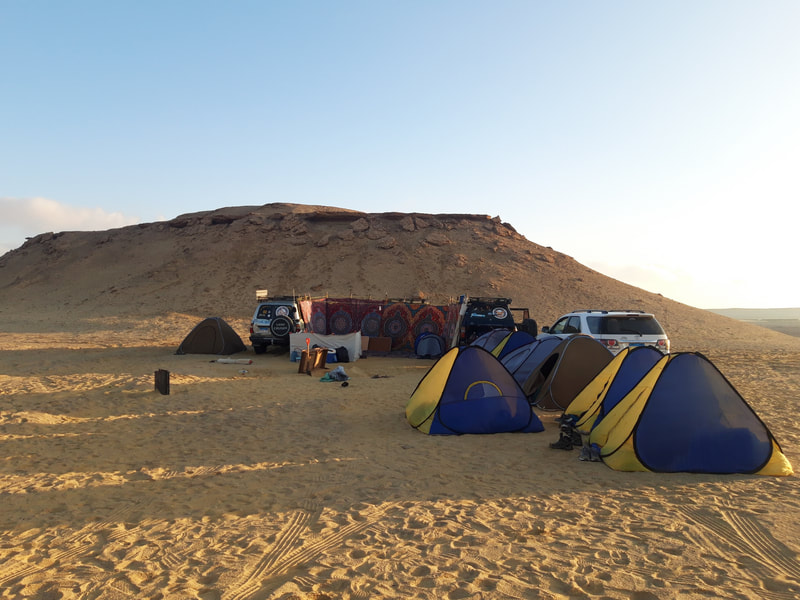Το απόγευμα στήνουμε το καταφύγιό μας στην έρημο και απολαμβάνουμε τη δύση του ήλιου πριν πέσει η νύχτα.