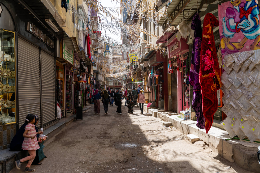 Ένα από τα πιο ζωντανά σημεία της διαδρομής μας είναι η υπαίθρια αγορά της Ροζέτας. Εκεί συναντάμε οπωροπωλεία, μαγαζιά με μπαχάρια, πάγκους με ψάρια από το Δέλτα του Νείλου, ρούχα, παιχνίδια και κόσμο που κινείται αδιάκοπα.